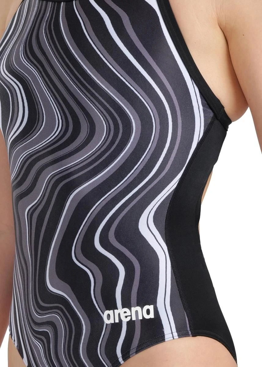 Arena women’s Lightdrop back swimsuit in Black is the ideal swimsuit for intense training days and regular pool use.