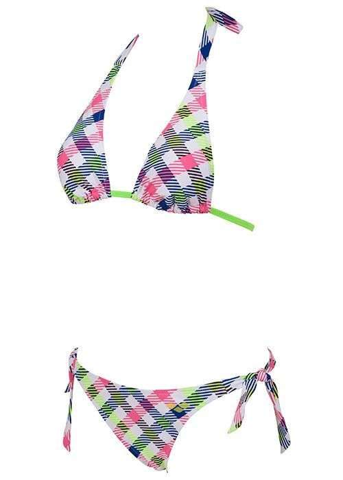 A classic two-piece triangle halterneck style swim bikini from Arena’s summer beachwear collection that will give you an elegant and flattering look on the beach, in the swimming pool or whilst sunbathing.