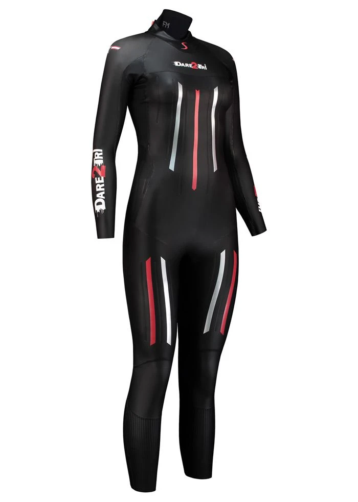 The new Women’s Dare2tri Mach3s.7 i the a great choice for a serious athlete. The black and red wetsuit utilises advanced materials such as 0.7mm Duraflex under arms construction and 44cell stability panels. GlideskinTM Technology and AquagripTM further adds to the improved performance of this wetsuit.